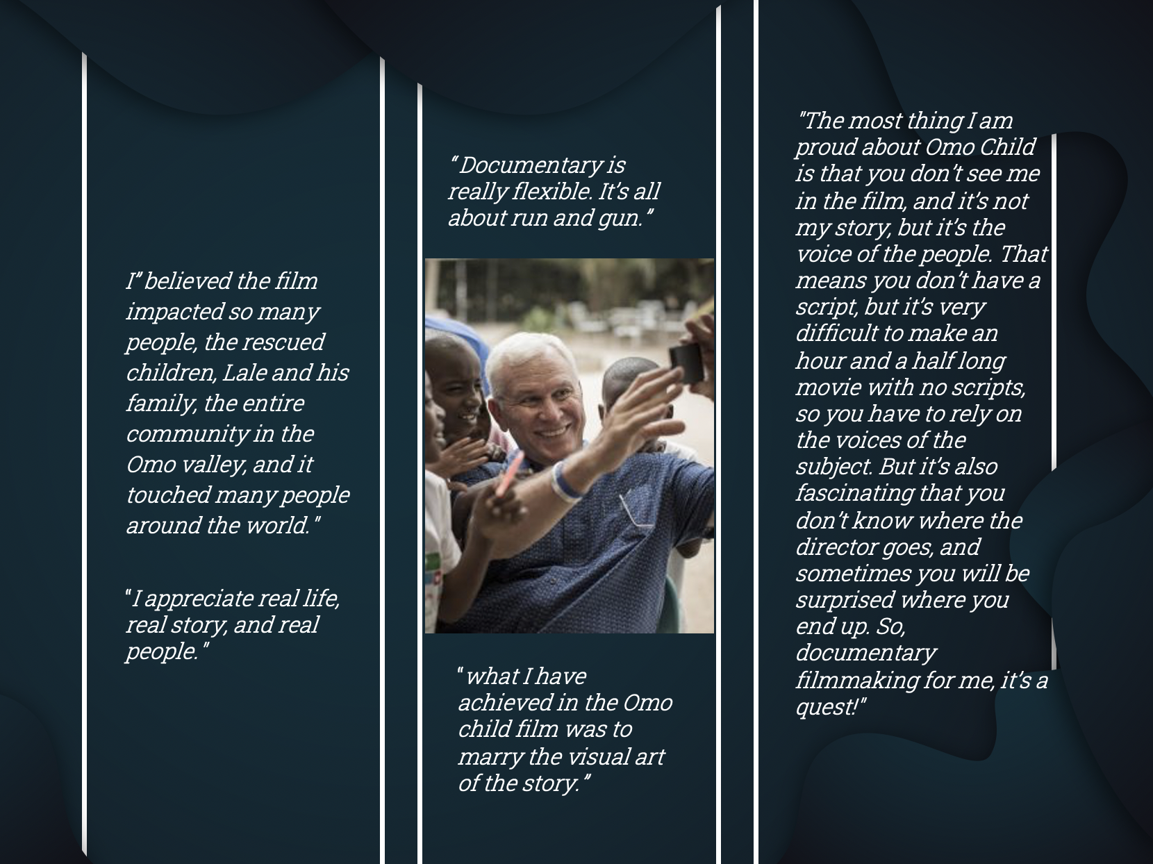 Former video games entrepreneur, now a globe- trotting photographer, is a co-founder of the San Diego- based nonprofit Omo Child Organization, devoted to saving children in the Omo Valley of Southwest Ethiopia